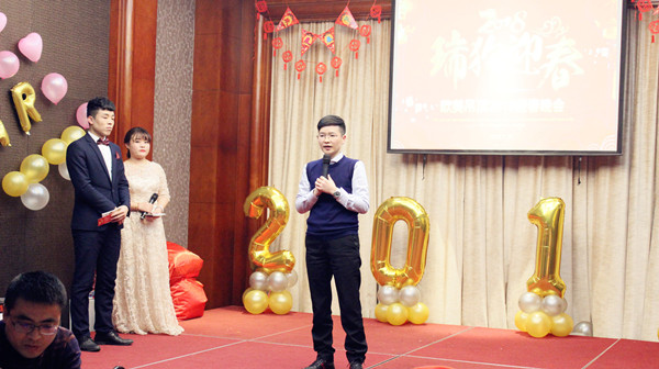年會(huì)晚會(huì)現(xiàn)場(chǎng)充滿激情、熱烈、活躍的氣氛。首先,由公司總經(jīng)理何飛君致辭,何總說(shuō):“在過(guò)去的一年,感謝歐美家人的付出,2017年歐美完成了多項(xiàng)改革,擴(kuò)大了團(tuán)隊(duì)規(guī)模;提升了企業(yè)形象,可以說(shuō)2017年為我們?nèi)蘸蟮陌l(fā)展打好了堅(jiān)實(shí)的基礎(chǔ)。所以在2018年的工作中希望我們都可以拿出激情與干勁,為我們的美好未來(lái)而奮斗” !